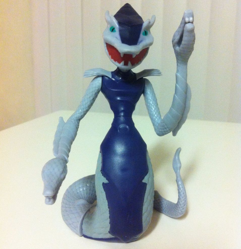 The rubbery arms kind of make up for the lack of articulation as well. This figure features swivel arms at the shoulders, a swivel waist and a ball joint head (which is pretty loose as you will see in a bit). You may also notice that the serpent arm sleeves and serpent eyes on the snake hands are not painted. I really wish the arm sleeves would have been painted as they look pretty bland. Additionally, the tail does not contain any paint detail and the shoulder pads are not blue like the stock picture indicates.